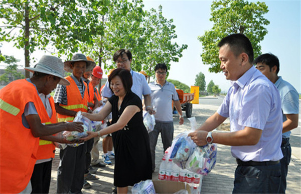 炎炎夏日,酷暑當(dāng)頭,持續(xù)高溫天氣給室外作業(yè)人員帶來(lái)了嚴(yán)峻考驗(yàn)。8月2日上午,園區(qū)黨工委委員、管委會(huì)副主任、開發(fā)公司總裁丁琦帶隊(duì)慰問了高溫下堅(jiān)守在一線的環(huán)衛(wèi)、物業(yè)保安、施工人員等,為他們送去了礦泉水、毛巾等防暑降溫用品。