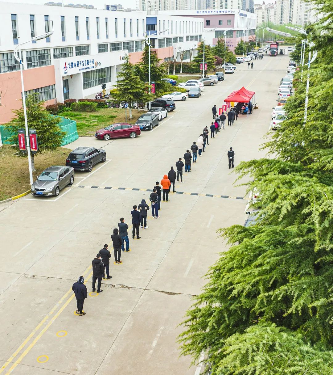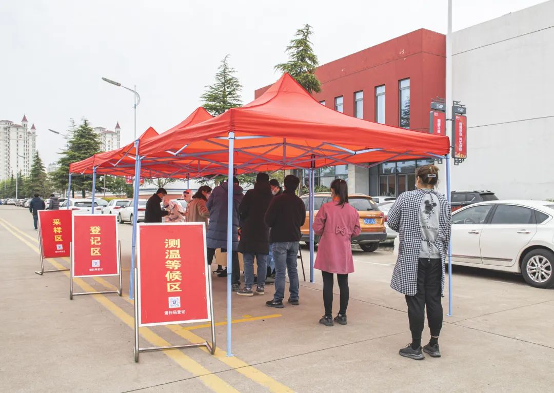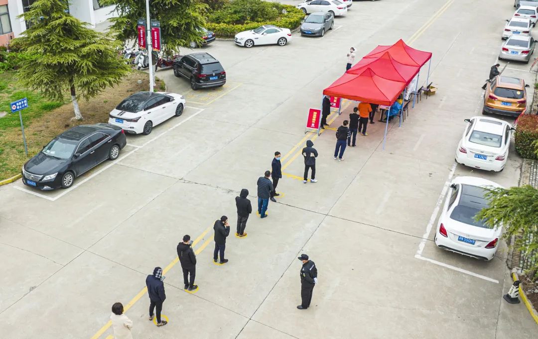 圖為3月21日,工業(yè)坊廠區(qū)各企業(yè)開展第二輪核酸抽檢工作,對保潔、保安、食堂工作人員做到每日一檢,工業(yè)坊各企業(yè)每天抽檢總?cè)藬?shù)的20%,做到一周內(nèi)全員應(yīng)檢盡檢。
