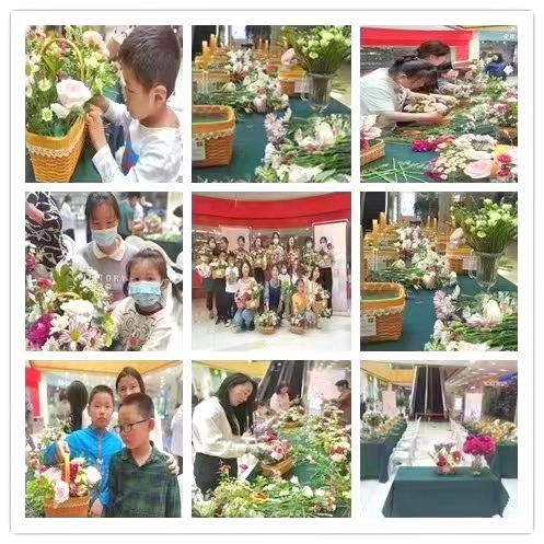 活動現(xiàn)場,花藝?yán)蠋熢敿?xì)講解了花藝的歷史淵源、特色、插花類型和技巧,并手把手傳授插花實操要領(lǐng)。在老師的指導(dǎo)幫助下,參與的媽媽和孩子們邊看邊學(xué),認(rèn)真創(chuàng)作,將原本普通的花草經(jīng)過巧手制作成精致的插花作品?;顒拥玫搅藡寢尯秃⒆拥膹V泛參與,尤其是媽媽們手捧著自己孩子制作的色彩鮮艷、錯落有致的花束拍照留念,臉上溢滿了幸福。