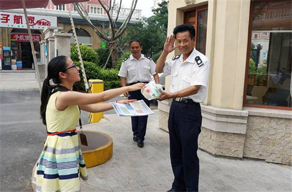 8月27日,社區(qū)為了對奉獻(xiàn)在基層一線的保安、保潔表達(dá)關(guān)心與敬意,特地準(zhǔn)備了防暑降溫物品,對高溫執(zhí)勤、勞作的在崗人員進行了慰問,并叮囑大家注意休息、做好防暑降溫。