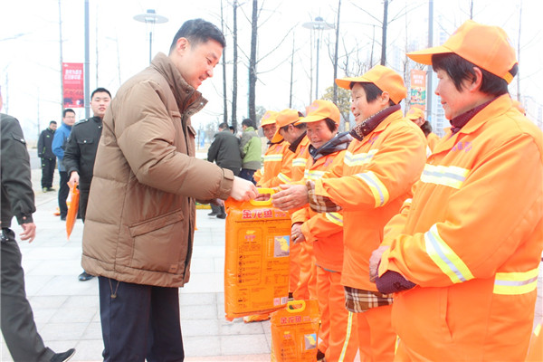 1月18日上午,園區(qū)黨工委委員、管委會副主任、規(guī)劃建設(shè)局局長許紹杰帶隊(duì)慰問了奮戰(zhàn)在一線的城市維護(hù)作業(yè)人員,向他們送上了春節(jié)的問候。